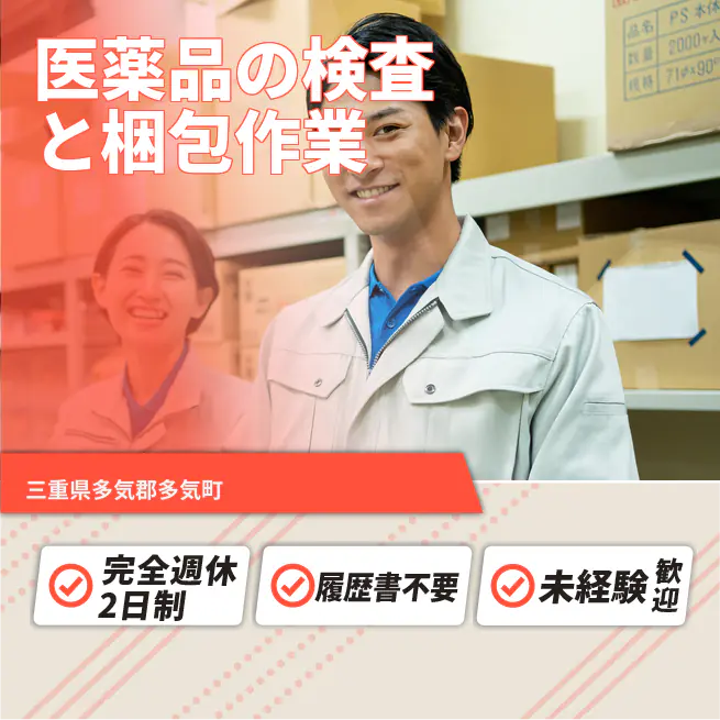 医薬品の外観チェックと段ボール梱包を担当。身近な医薬品でやりがいのある軽作業です。