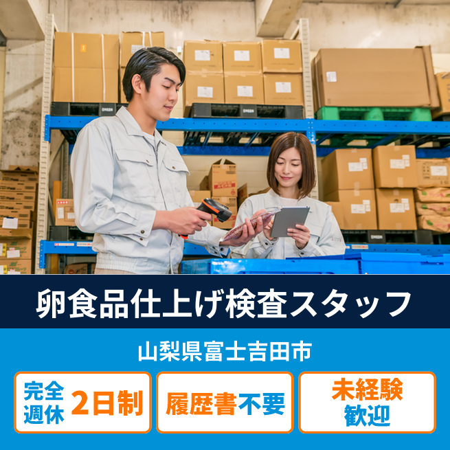 オムレツや錦糸卵、半熟卵等加工された鶏卵食品の仕上げ検査、袋詰め、シール・梱包等の作業。クリーンルーム内での作業となります。