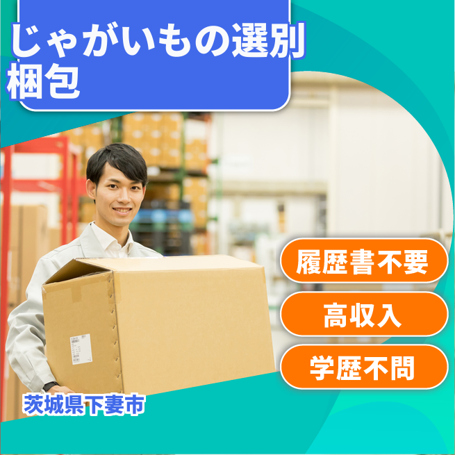 給与詳細 月収例 280,800円 日給例 11,520円 勤務地 茨城県下妻市 仕事内容 ◆じゃがいもの選別、カット作業。お土産用の小袋の製品の梱包。