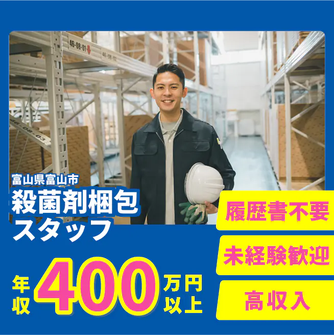 給与詳細 月収例 260,000円 時給例 1,800円 勤務地 富山県富山市 仕事内容 【未経験OK】残業少なめ★高収入ワークで安定生活/履歴書不要