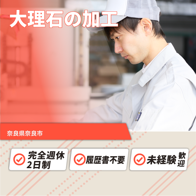 給与詳細 月収例 205,000円 日給例 10,250円 勤務地 奈良県奈良市 仕事内容 大理石の加工メーカーでの機械オペレーター