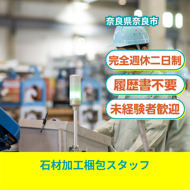 給与詳細 月収例 205,000円 日給例 10,250円 勤務地 奈良県奈良市 仕事内容 【石材加工梱包スタッフ】