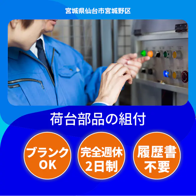給与詳細 月収例 253,500円 日給例 10,400円 勤務地 宮城県仙台市宮城野区 仕事内容 トラック部品組立業務。