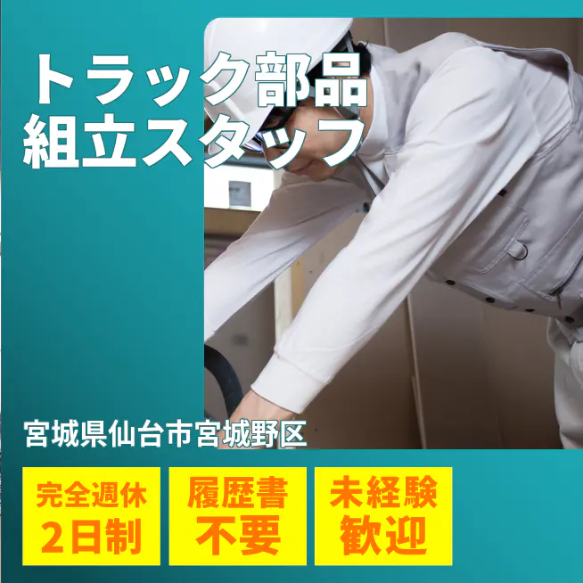 給与詳細 月収例 253,500円 日給例 10,400円 勤務地 宮城県仙台市宮城野区 仕事内容 【トラック部品組立スタッフ】