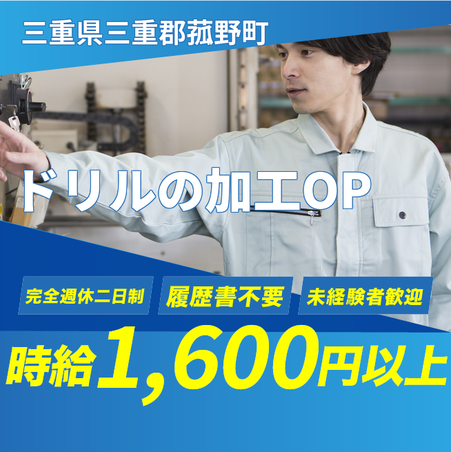 給与詳細 月収例 250,000円 時給例 1,600円 勤務地 三重県三重郡菰野町 仕事内容 工業用ドリルの加工・機械操作・出荷準備