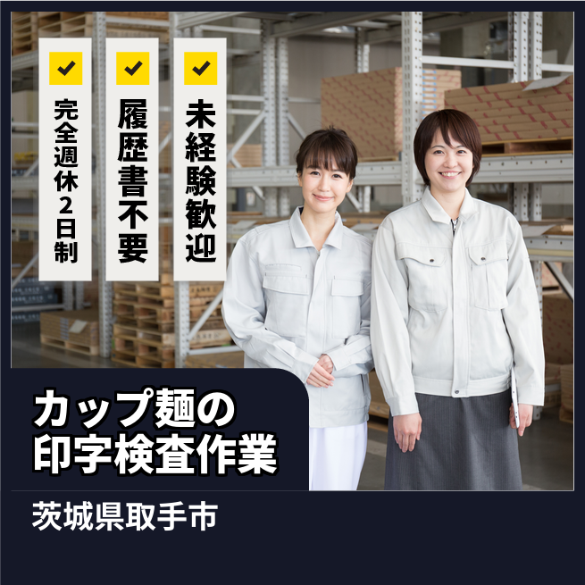 給与詳細 月収例 230,000円 日給例 11,500円 勤務地 茨城県取手市 仕事内容 カップ麺の原料投入、資材運搬、機械の洗浄、カップ麺の具材に異物が無いか、カップの中に具材が全て入っているかの目視検査、カップ麺の具材トッピングなどのお仕事です。