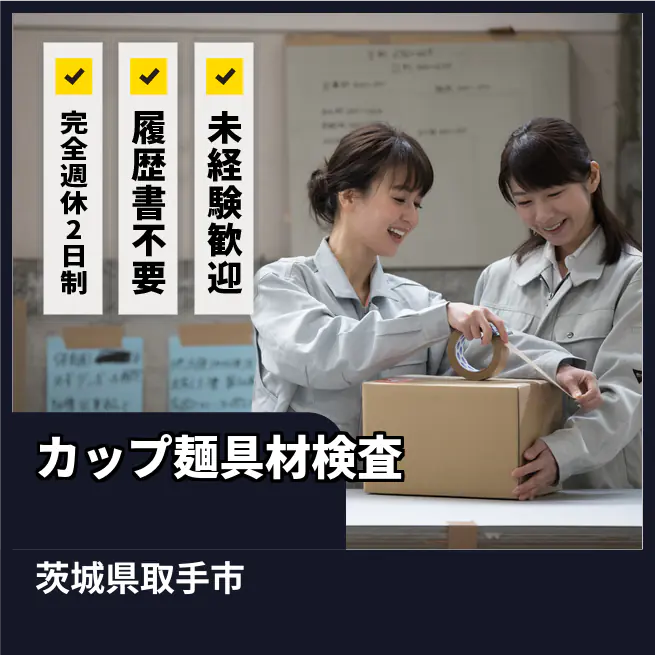 給与詳細 月収例 230,000円 日給例 11,500円 勤務地 茨城県取手市 仕事内容 【業務内容】カップ麺製造のサポート全般