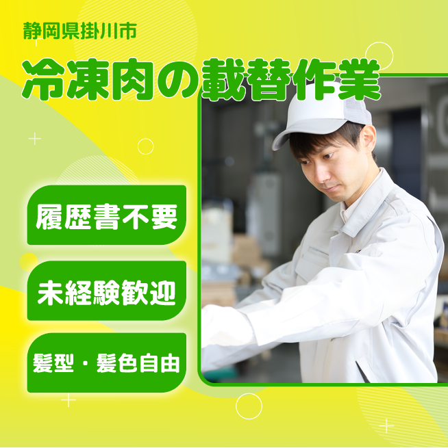 就業場所:全国(派遣先)/就業範囲:派遣先業務全般(詳細は就業条件明示書で明示する) 冷凍の肉のかたまりを台車に乗せ換えるオシゴト