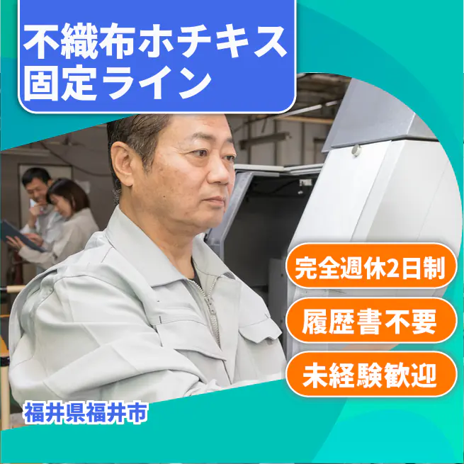 給与詳細 月収例 188,800円 時給例 1,200円 勤務地 福井県福井市 仕事内容 【不織布ホチキス固定ライン】