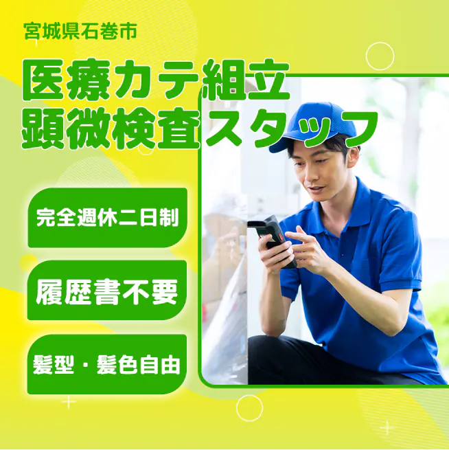 給与詳細 月収例 216,000円 日給例 10,800円 勤務地 宮城県石巻市 仕事内容 【医療カテ組立顕微検査スタッフ】