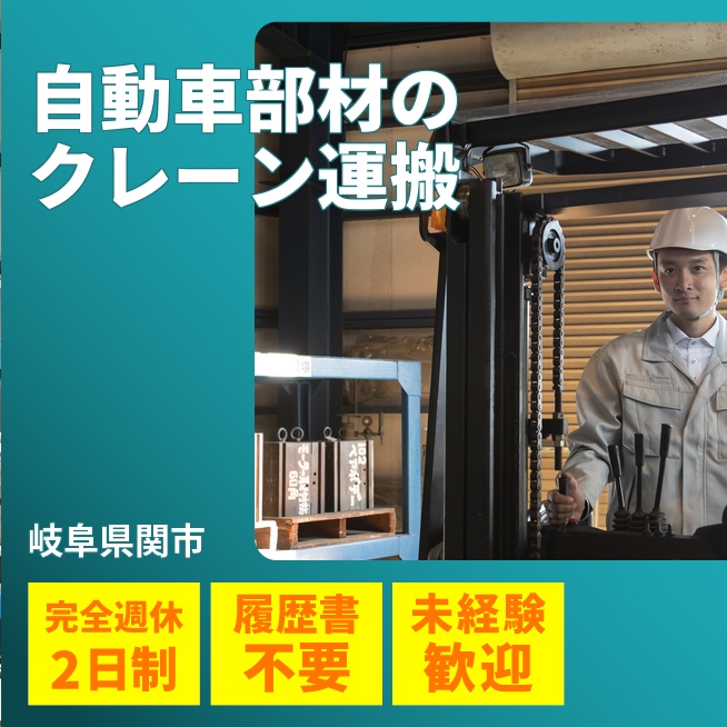自動車部品の材料をプレス部門でクレーン搬送し、付随作業も行います。