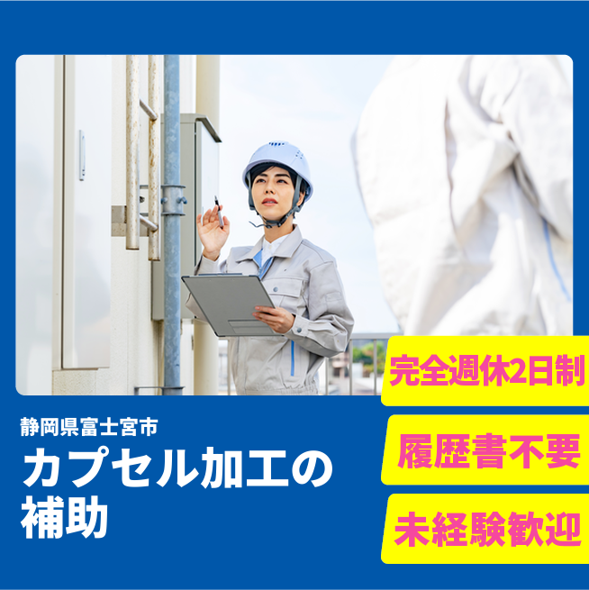 給与詳細 月収例 273,000円 日給例 11,200円 勤務地 静岡県富士宮市 仕事内容 製造に使う