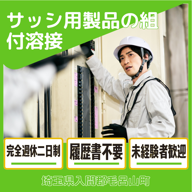 給与詳細 月収例 260,000円 日給例 13,000円 勤務地 埼玉県入間郡毛呂山町 仕事内容 ビルのドア枠、窓のサッシ用のステンレス製品の組付け(電動ドライバー使用)・溶接機械の加工オペレーター
