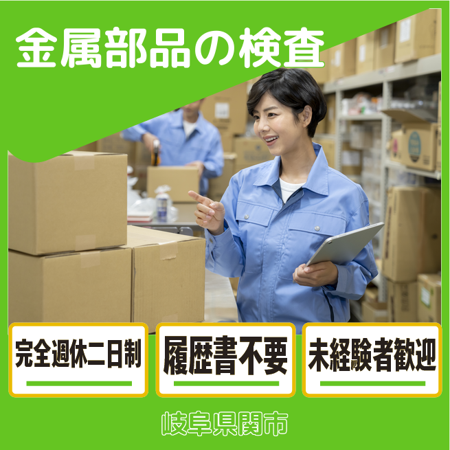 給与詳細 月収例 265,000円 日給例 13,250円 勤務地 岐阜県関市 仕事内容 金属製品の検査のお仕事です!