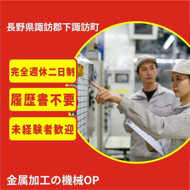 給与詳細 月収例 210,000円 日給例 10,500円 勤務地 長野県諏訪郡下諏訪町 仕事内容 半導体・自動車・医療関係など向けの金属加工をお願いいたします。金属材料を機械にセットし、加工が終わりましたら機械から外します。一部、目視や測定器を使用して検査もして頂きます。
