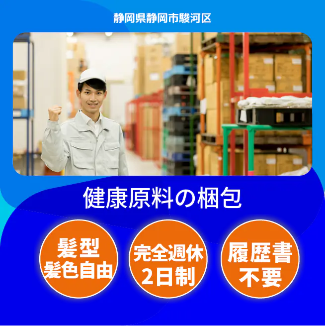 給与詳細 月収例 240,000円 日給例 12,000円 勤務地 静岡県静岡市駿河区 仕事内容 健康食品や美容サプリメントなどの目視検査、原材料の計量、原材料の運搬・機械導入など。部署担当によって異なります。