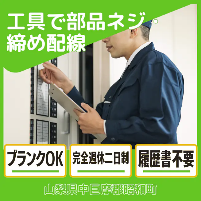 給与詳細 月収例 253,500円 日給例 10,400円 勤務地 山梨県中巨摩郡昭和町 仕事内容 六角レンチ・トルクレンチを使用しての組立業務。