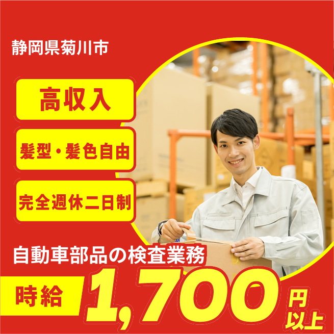 給与例は概算での計算となります。※実際と異なるケースもございます。 交通費 支給あり 応募の流れ 本ページ内<応募する>ボタンより、必要項目をご入力の上、ご応募ください。 勤務地 【勤務地】静岡県菊川市- 勤務時間 【勤務地】【勤務時間】