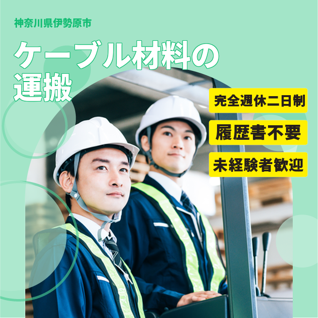 給与詳細 月収例 273,000円 日給例 11,200円 勤務地 神奈川県伊勢原市 仕事内容 電線ケーブル製造材料の受け取り、荷下ろしおよびそれらに付帯する業務、ドラム缶を転がしたり一部力作業有り