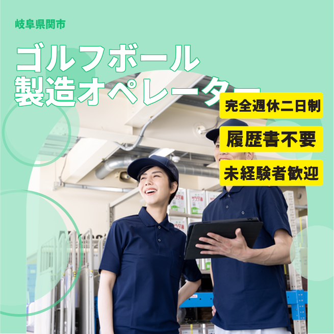 給与詳細 月収例 282,750円 日給例 11,600円 勤務地 岐阜県関市 仕事内容 【ゴルフボール製造オペレーター】