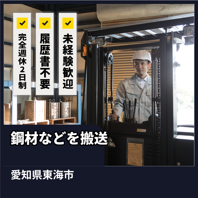 鋼材・鍛造品・電子機能材料等を扱う企業でのカウンターフォーク常時乗車の運搬業務です。