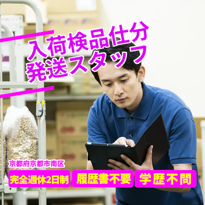 給与詳細 月収例 253,500円 日給例 10,400円 勤務地 京都府京都市南区 仕事内容 【入荷検品仕分発送スタッフ】