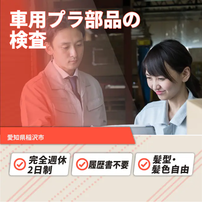給与詳細 月収例 292,000円 日給例 14,600円 勤務地 愛知県稲沢市 仕事内容 自動車内外装部品・機能部品のめっき検査