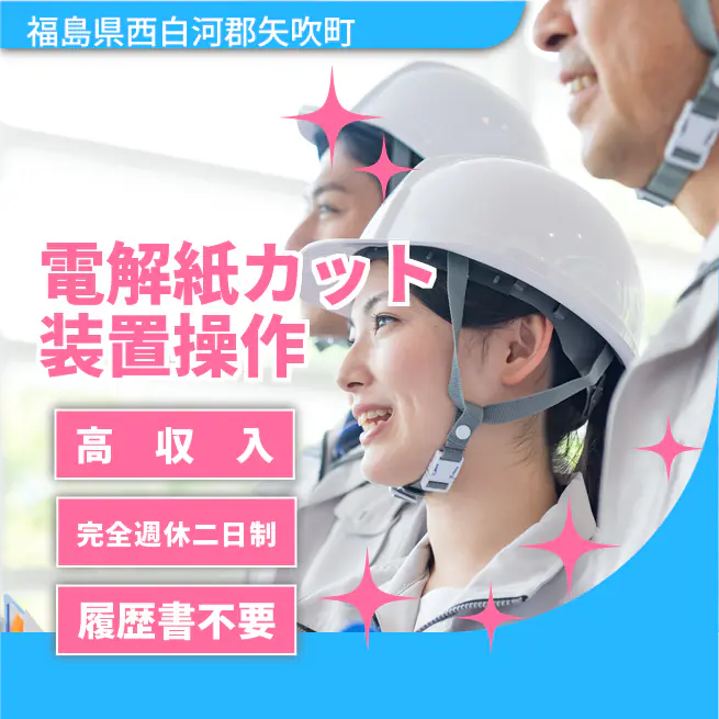 給与詳細 月収例 273,000円 日給例 11,200円 勤務地 福島県西白河郡矢吹町 仕事内容 【電解紙カット装置操作】