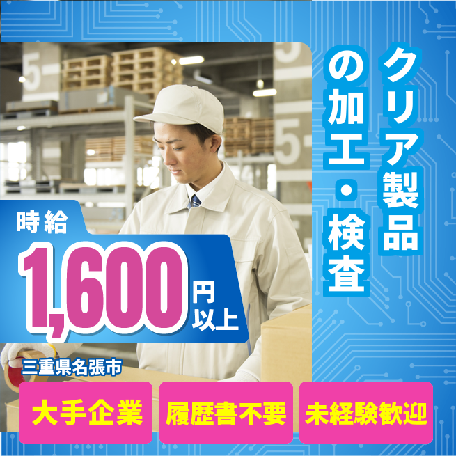 給与詳細 月収例 280,000円 時給例 1,600円 勤務地 三重県名張市 仕事内容 《バッテリー・蓄電池の製造》