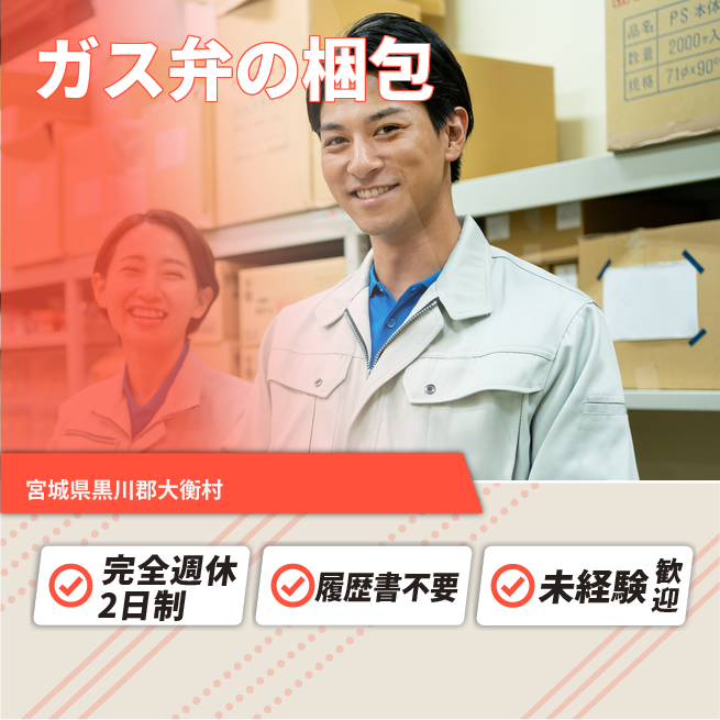 給与詳細 月収例 276,500円 時給例 1,600円 勤務地 宮城県黒川郡大衡村 仕事内容 半導体製造装置に使用される高精度ガス弁や関連機器を取り扱う倉庫内作業です。製品の格納やピッキング、出荷前の梱包作業までを担当していただきます。軽作業が中心で、取り扱う製品は手のひらサイズがメイン。空調の効いた清潔な作業環境で、黙々と作業に集中できます。