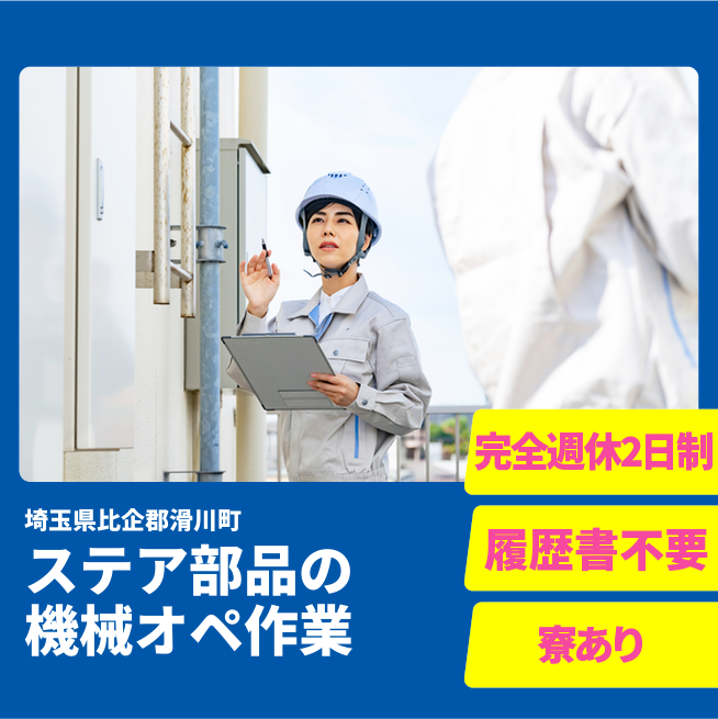 給与詳細 年収例 4,032,000円 月収例 336,000円 勤務地 埼玉県比企郡滑川町 仕事内容 パワーステアリング部品の加工機械オペレーターとして機械へのセットと取り出し、簡単な検査のお仕事です。他に組立・組付け・熱処理・みずすましなどのお仕事もあります。