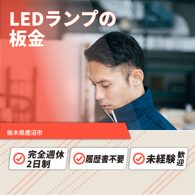給与詳細 月収例 271,218円 日給例 13,561円 勤務地 栃木県鹿沼市 仕事内容 照明器具の板金・ベンダー機の機械オペレーター