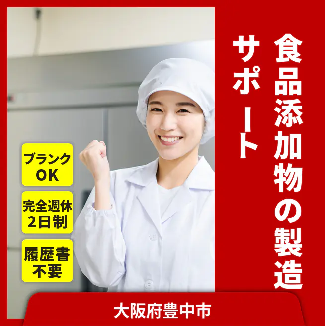 食品添加物の仕込み~梱包までクリーンルーム補助作業です。