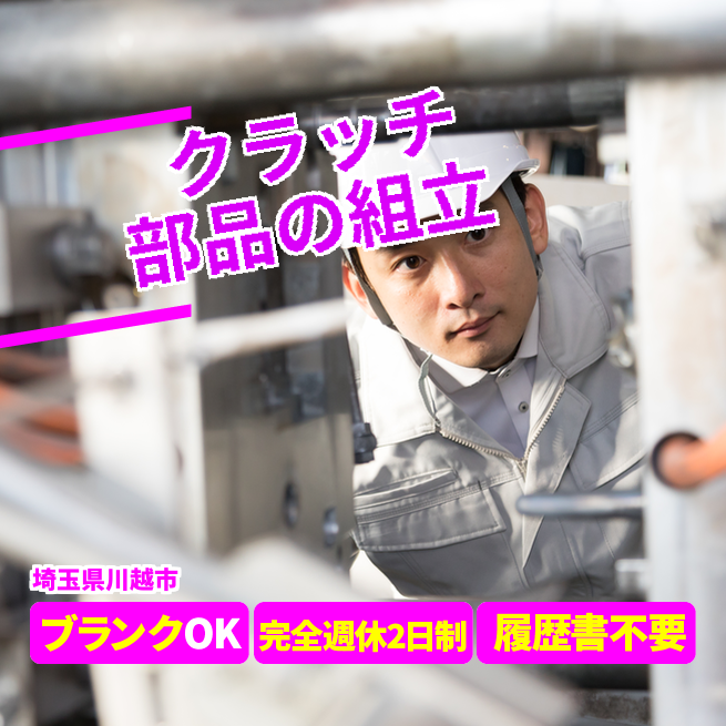 給与詳細 月収例 312,000円 時給例 1,600円 勤務地 埼玉県川越市 仕事内容 クラッチ部品の組立、検査、梱包、運搬