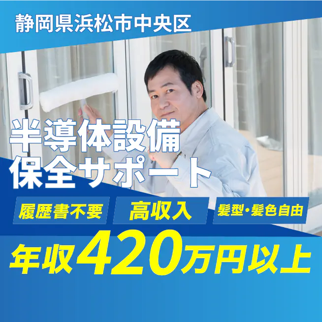 給与詳細 年収例 4,680,000円 月収例 390,000円 勤務地 静岡県浜松市中央区 仕事内容 【半導体設備保全サポート】