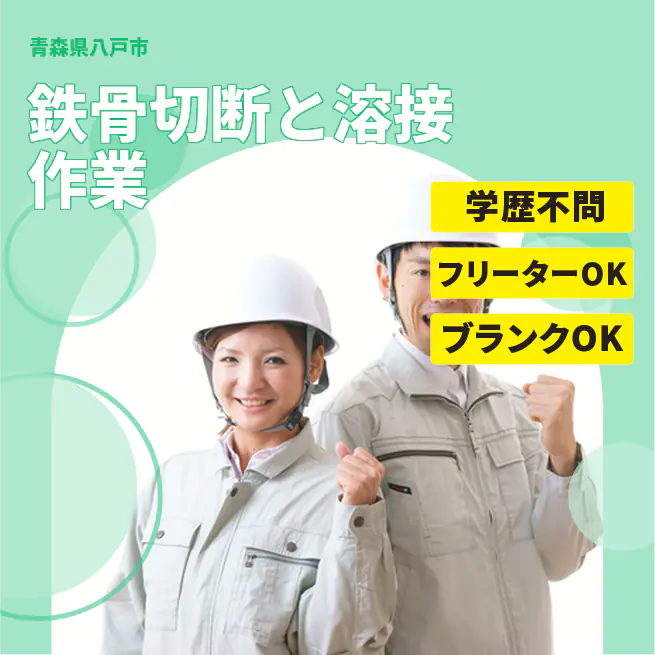 時給例:1170円 交通費 支給あり 応募の流れ 本ページ内<応募する>ボタンより、必要項目をご入力の上、ご応募ください。 勤務地 【勤務地】青森県八戸市大久保大山 勤務時間 【勤務地】8:00~17:15(日勤) 必須資格 要床上式クレーン・玉掛・アーク溶接・ガス溶接免許 福利厚生 ★社会保険完備、有給休暇制度有、通勤交通費支給、ワンルーム寮完備、赴任旅費支給、車通勤可、送迎バス有、制服貸与 ※勤務先による