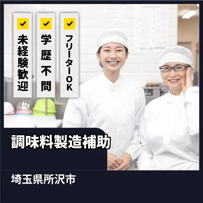 時給例:1500円 交通費 支給あり 応募の流れ 本ページ内<応募する>ボタンより、必要項目をご入力の上、ご応募ください。 勤務地 【勤務地】埼玉県所沢市松郷 勤務時間 【勤務地】8:30~17:00(日勤) 必須資格 経験不問 福利厚生 ★社会保険完備、有給休暇制度有、通勤交通費支給、ワンルーム寮完備、赴任旅費支給、車通勤可、送迎バス有、制服貸与 ※勤務先による