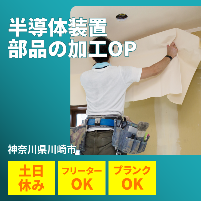 給与詳細 月収例 224,000円 日給例 11,200円 勤務地 神奈川県川崎市高津区 仕事内容 半導体製造装置部品の加工マシンオペレーターです。円盤状の原材料は約10~30kgあるため重いですが機械にセットしボタンを押せば後は自動です。