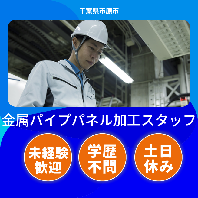 給与詳細 月収例 240,000円 日給例 12,000円 勤務地 千葉県市原市 仕事内容 【金属パイプパネル加工スタッフ】