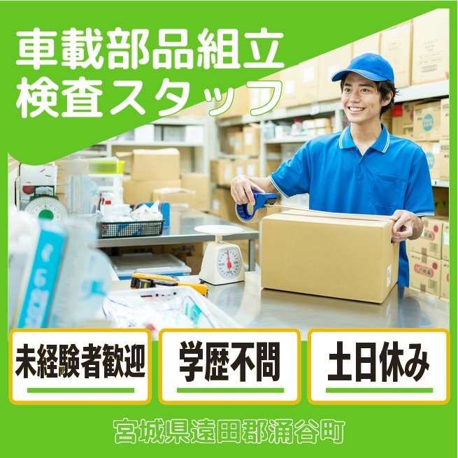 給与詳細 月収例 240,000円 日給例 12,000円 勤務地 宮城県遠田郡涌谷町 仕事内容 【車載部品組立検査スタッフ】