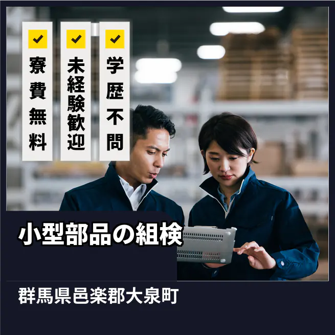 時給例:1438円 交通費 支給あり 応募の流れ 本ページ内<応募する>ボタンより、必要項目をご入力の上、ご応募ください。 勤務地 【勤務地】群馬県邑楽郡大泉町いずみ1丁目 勤務時間 【勤務地】6:30~15:15/16:45~翌1:30(交替制)※他時間帯あり、配属先により異なる 必須資格 経験不問 福利厚生 ★社会保険完備、有給休暇制度有、通勤交通費支給、ワンルーム寮完備、赴任旅費支給、車通勤可、送迎バス有、制服貸与 ※勤務先による