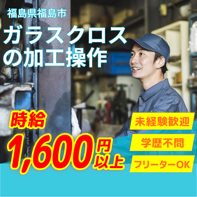 給与詳細 月収例 256,000円 時給例 1,600円 勤務地 福島県福島市 仕事内容 ガラスクロスの製造における表面処理・機械操作・点検・資材交換など。