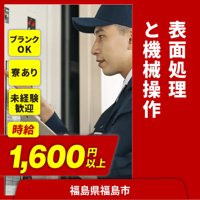 時給例:1600円 交通費 支給あり 応募の流れ 本ページ内<応募する>ボタンより、必要項目をご入力の上、ご応募ください。 勤務地 【勤務地】福島県福島市佐倉下一本杉 勤務時間 【勤務地】5:55~14:15/13:55~22:15/21:55~翌6:15(3交替) 必須資格 経験不問 福利厚生 ★社会保険完備、有給休暇制度有、通勤交通費支給、ワンルーム寮完備、赴任旅費支給、車通勤可、送迎バス有、制服貸与 ※勤務先による
