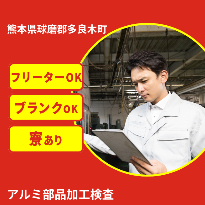 給与詳細 月収例 216,000円 日給例 10,800円 勤務地 熊本県球磨郡多良木町 仕事内容 自動車やバイクに使用するアルミ部品の機械加工業務。鋳造工程から来た部品を加工機械にセットして機械操作し、加工後に製品のバリ取り加工や目視検査・測定などを行います。