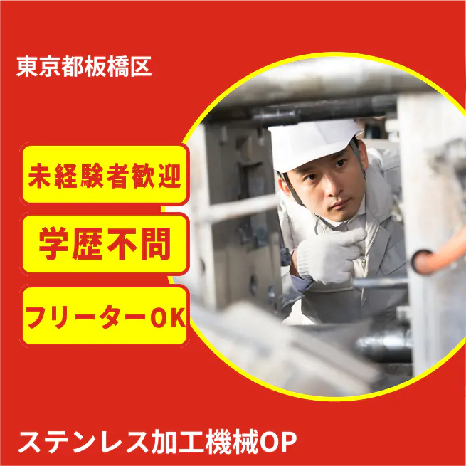 給与詳細 月収例 240,000円 日給例 12,000円 勤務地 東京都板橋区 仕事内容 ステンレス材料に対するシャーリング加工機・サンダーを使用した面取り加工、研磨機を使用した表面研磨加工機械オペレーター。