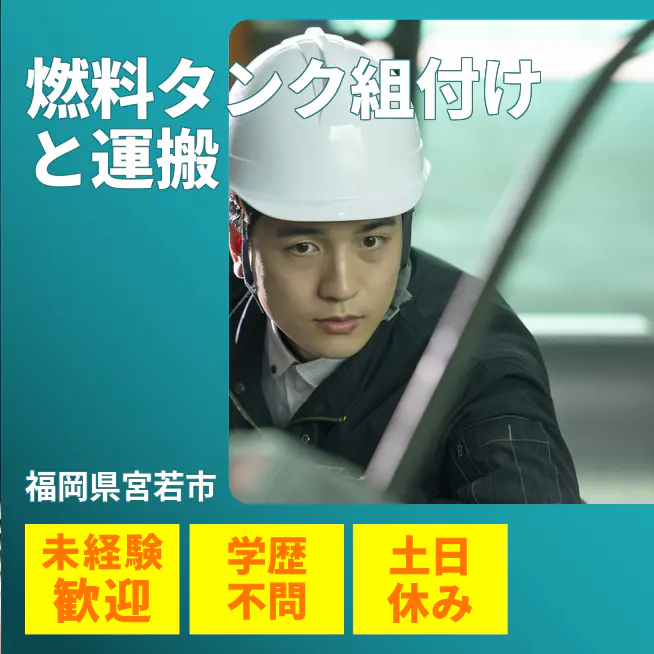 クルマ用燃料タンクの組み付けと、工程間の運搬を担当する仕事です。決まった手順で進めるので、未経験からでもコツコツ習得できます。