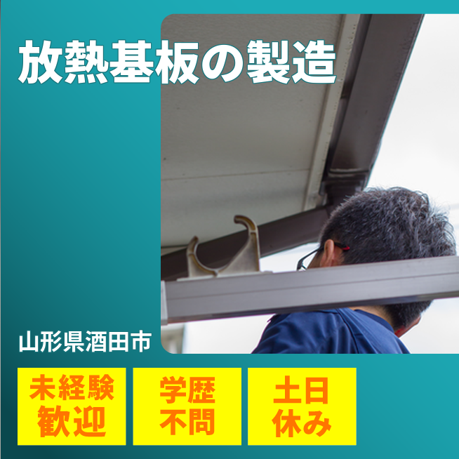 給与詳細 月収例 232,000円 日給例 11,600円 勤務地 山形県酒田市 仕事内容 放熱基板の製造マシンオペレーター・検査。手のひらサイズの製品から1ミリ単位の製品まで加工していきます。クリーンルーム内工程と一般作業工程があるため、工程により環境や扱う製品のサイズは異なりますが、どの工程もマシンオペレーターや検査がメインとなります。