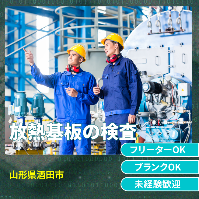 放熱基板のマシンオペレーター・検査。クリーン/一般工程でサイズ多様な製品を扱います。
