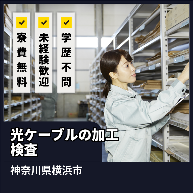 給与詳細 月収例 272,000円 時給例 1,700円 勤務地 神奈川県横浜市栄区 仕事内容 光ファイバー・通信ケーブルの製造です。熱したガラスを吊り下げ細く引き延ばして、樹脂をコーティングしたり樹脂に着色を行い、髪の毛のように細い一本の光ファイバーを作ります。通信ケーブルはピンセットを使い、光ファイバーを束ねて1本のケーブルに仕上げていきます。ライン作業でなく、座り仕事が中心です。他にも検査・運搬・補助作業など様々な工程があります。