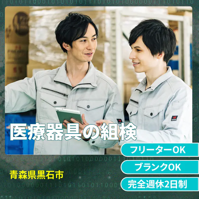 給与詳細 月収例 177,600円 時給例 1,110円 勤務地 青森県黒石市 仕事内容 医療器具の加工や組立、検査作業になります。細かい製品を扱う際、工程によってはピンセットや顕微鏡を使用して作業する可能性もあります。クリーンルーム内なので年中温度が一定で作業しやすい環境です。